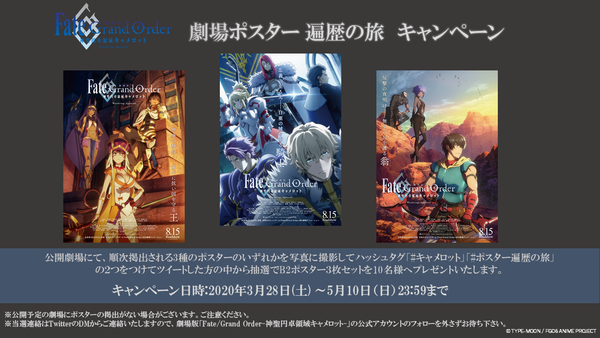 劇場版「Fate/Grand Order-神聖円卓領域キャメロット-」劇場ポスター遍歴の旅キャンペーン開催