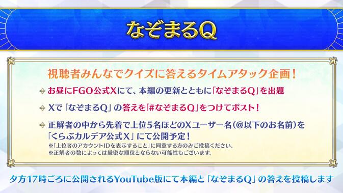 ・お昼にFGO公式Xにて、本編の更新とともに「なぞまるQ」を出題