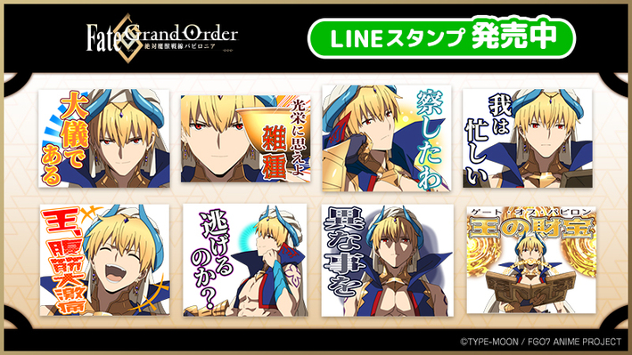 ギルガメッシュのLINEスタンプ&LINE着せかえ発売決定!賢王ギルガメッシュの名場面をラインナップしたLINEスタンプの発売が決定!