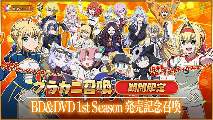 【期間限定】Twitter企画「グラカニ召喚 1st Season」を開催!いよいよ6月2日(水)の「Fate/Grand Carnival」Blu-ray&DVD 1st Season発売まであと5日!