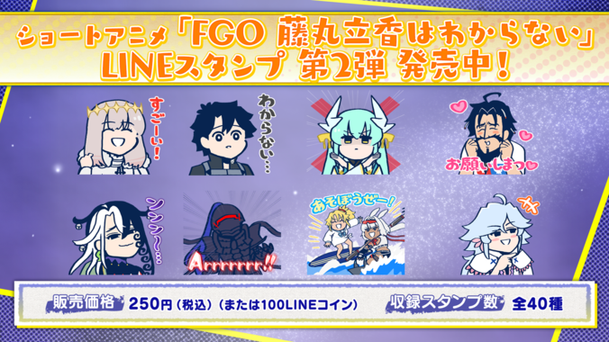 ショートアニメ「Fate/Grand Order 藤丸立香はわからない」LINEスタンプ第2弾発売中!ショートアニメ「Fate/Grand Order 藤丸立香はわからない」のLINEスタンプ第2弾発売中!